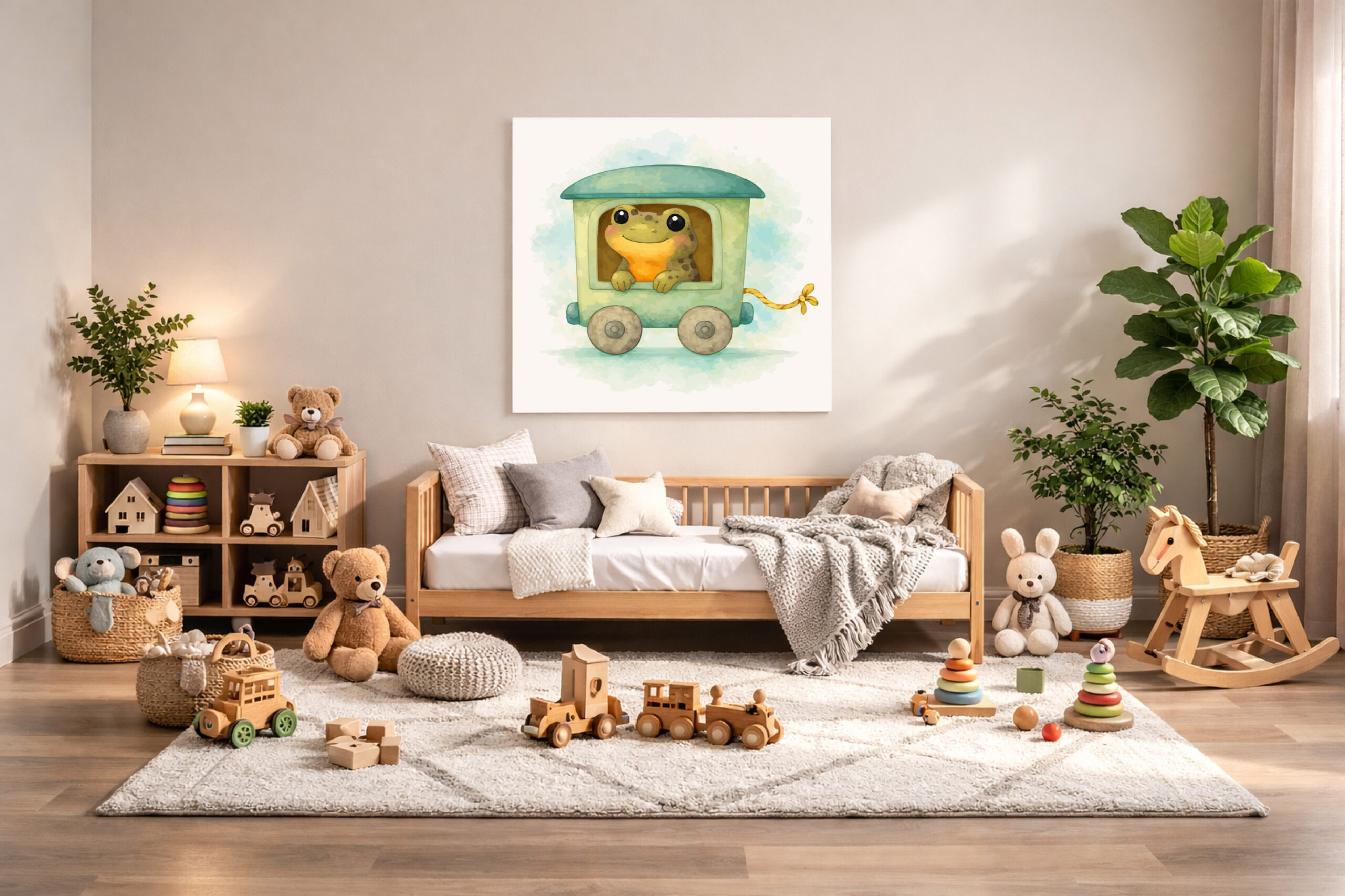 This salamander train wall art printable brings a soft woodland charm to nursery spaces. The gentle
